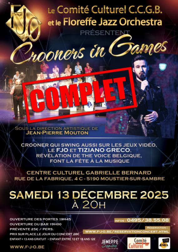 The Floreffe Jazz Orchestra invites you to an exceptional evening where the great classics of crooners merge with iconic video game music. Under the artistic direction of Jean-Pierre Mouton, let yourself be carried away by an elegant and surprising atmosphere, carried by the captivating voice of Tiziano Greco, a revelation on The Voice Belgium.